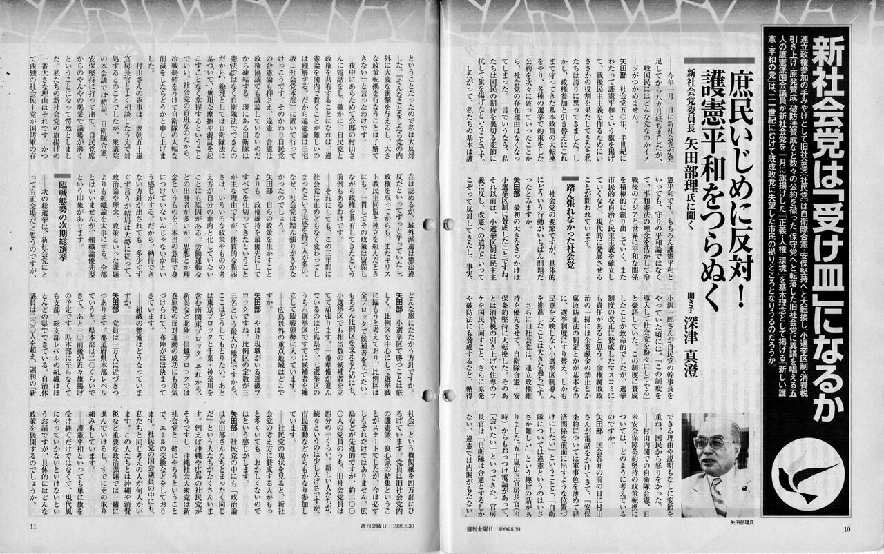 新社会党委員長(当時)矢田部理氏に聞く 聞き手深津真澄