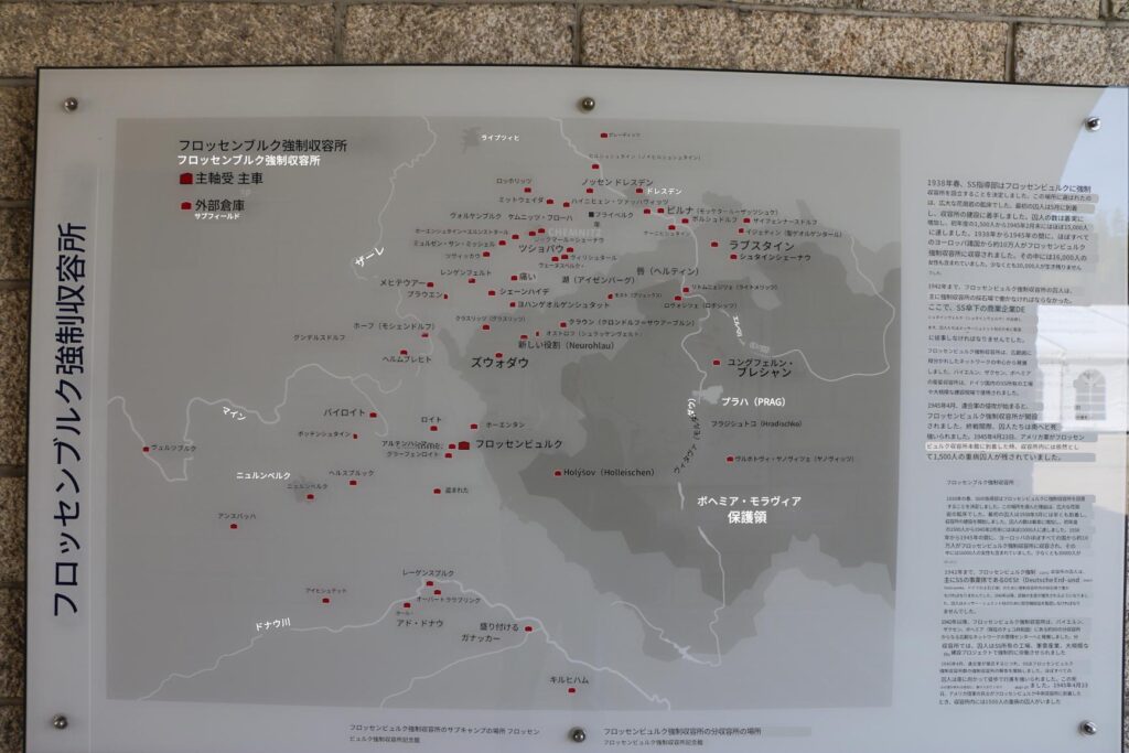 1942年以降、武器の生産が優先されるようになりました。その後、囚人はメッサー・シュミット社のために航空機部品を製造しなければなりませんで1942年以降、フロッセンビュルク強制収容所は、バイエルン、ザクセン、ボヘミア(現在のチェコ共和国)にある約80の分収容所からなる広範なネットワークの管理センターへと発展しました。分収容所では、囚人はSS所有の工場、軍需産業、大規模な建設プロジェクトで強制的に労働させられましたした。