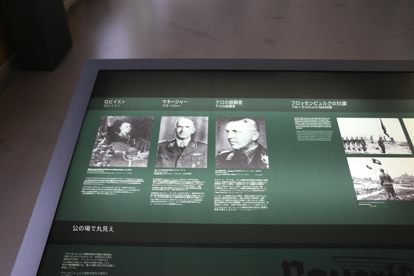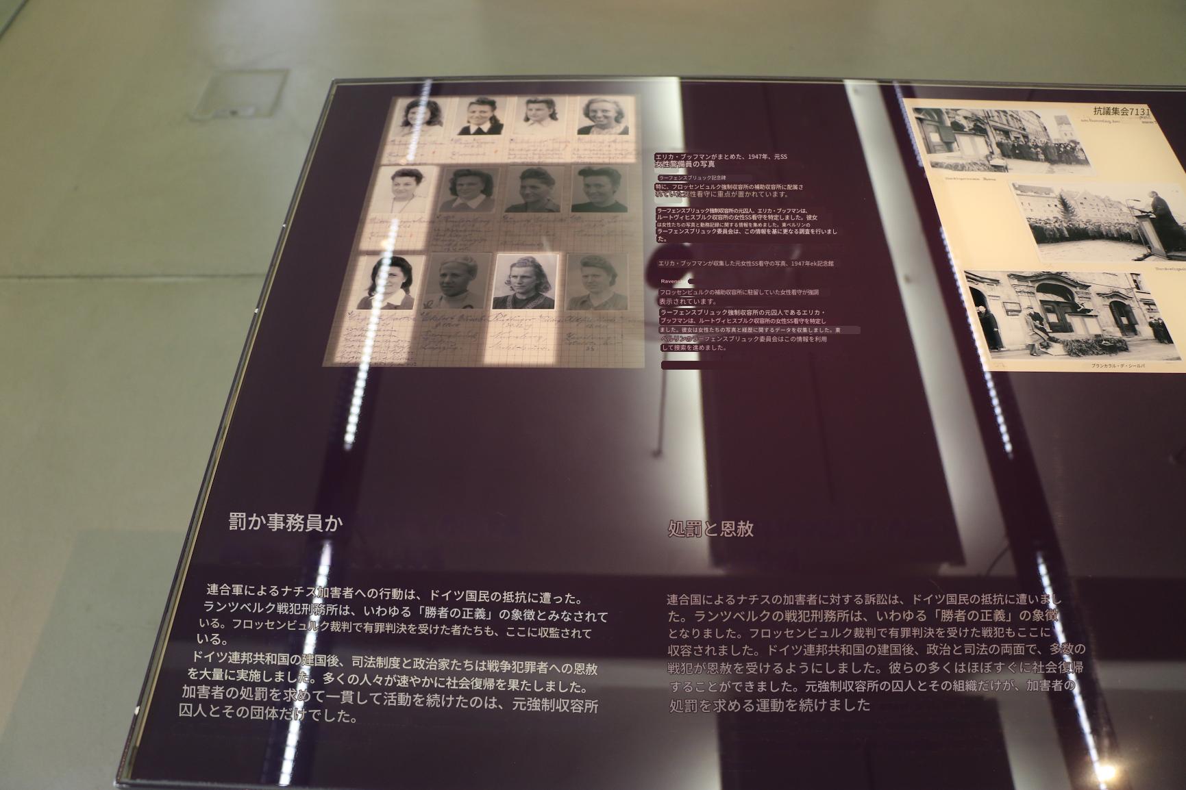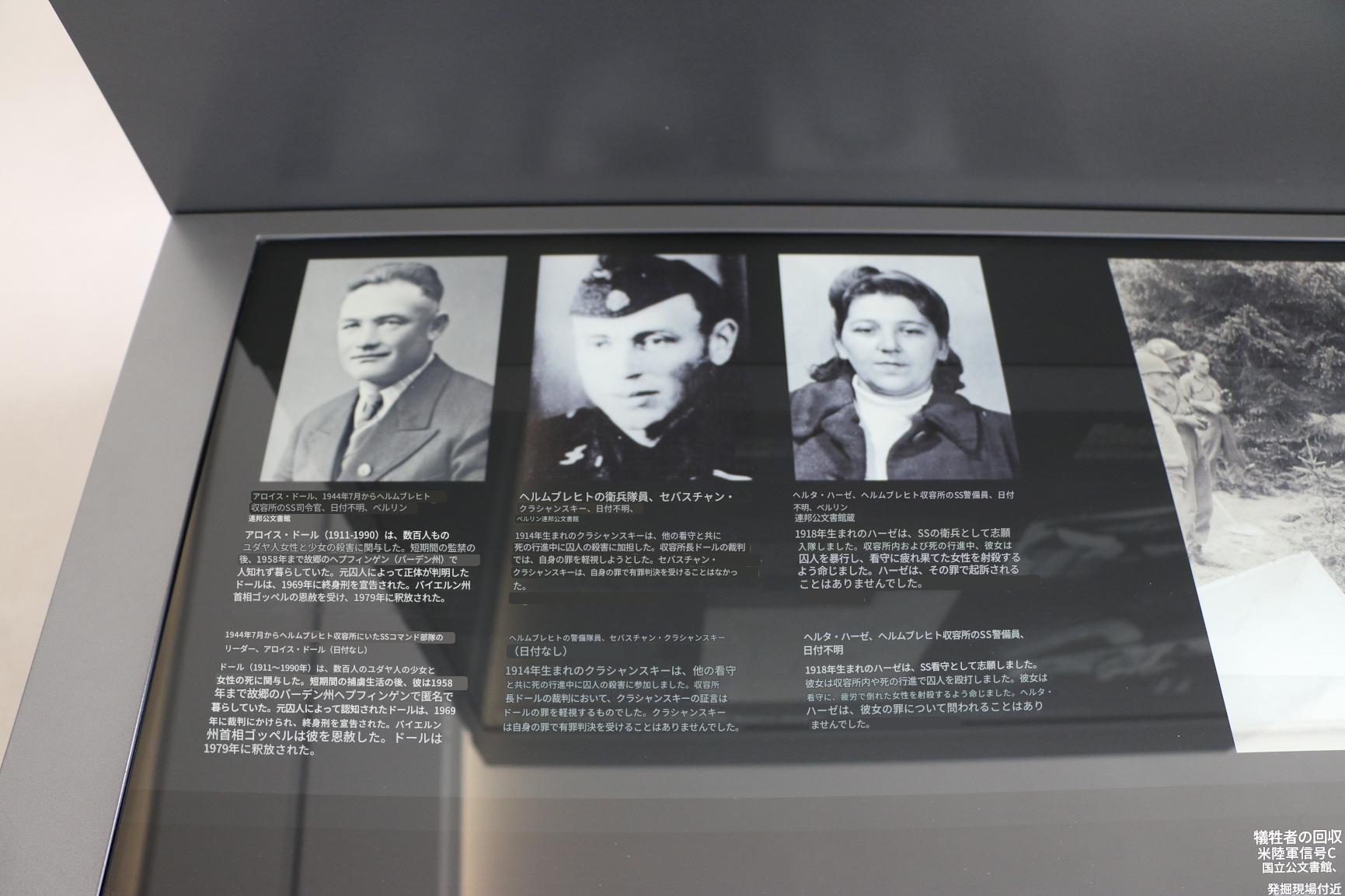 右)ツアーガイド 特に、私がグループで必ず訪れる場所があります。それは、かつての洗濯棟の地下室に展示されている囚人の伝記です。これは、私の考えでは、この慰霊碑の目玉だからです。(略)生存者はどのように暮らしたのでしょうか?どのようにして新しい生活を始めることができたのでしょうか?私たちはこの問題についてよく考えます。もちろん、学校のクラスの中には、問題のある社会政治的見解を持つ生徒もいます。しかし、伝記を扱うこの展示の部分では、誰もが貴重な考えを深く掘り下げることができることを、私は何度も実感してきました。