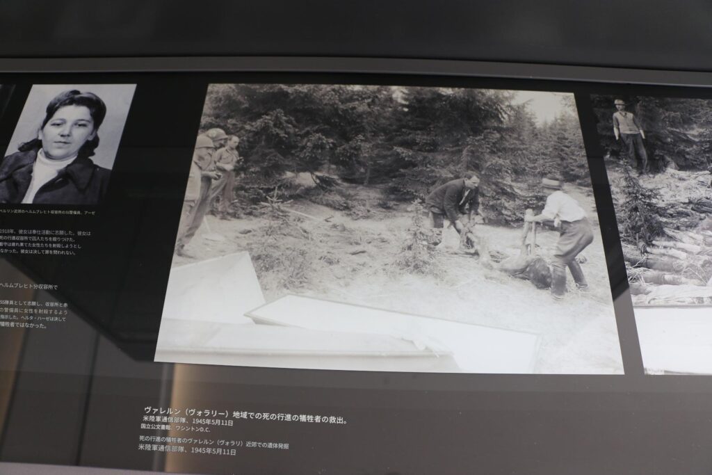行進の終点はダッハウ強制収容所でした。アメリカ軍が予想よりも早く接近していたため、囚人の列はあてもなくさまよいました。アメリカ軍は散らばった集団を解放しました。部隊は行進路沿いに5000人以上の遺体を急いで埋葬しました。