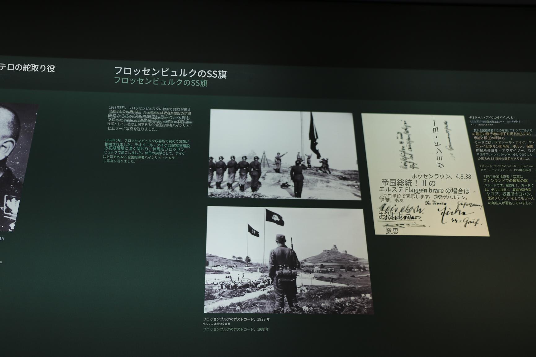 1938年5月、フロッセンビュルク収容所で初めてSS旗が掲揚されました。テオドール・アイケは収容所建設の初期段階に深く関わり、休暇もフロッセンビュルクで過ごしました。休日の挨拶として、アイケは上司であるSS全国指導者ハインリヒ・ヒムラーに写真を送りました。
