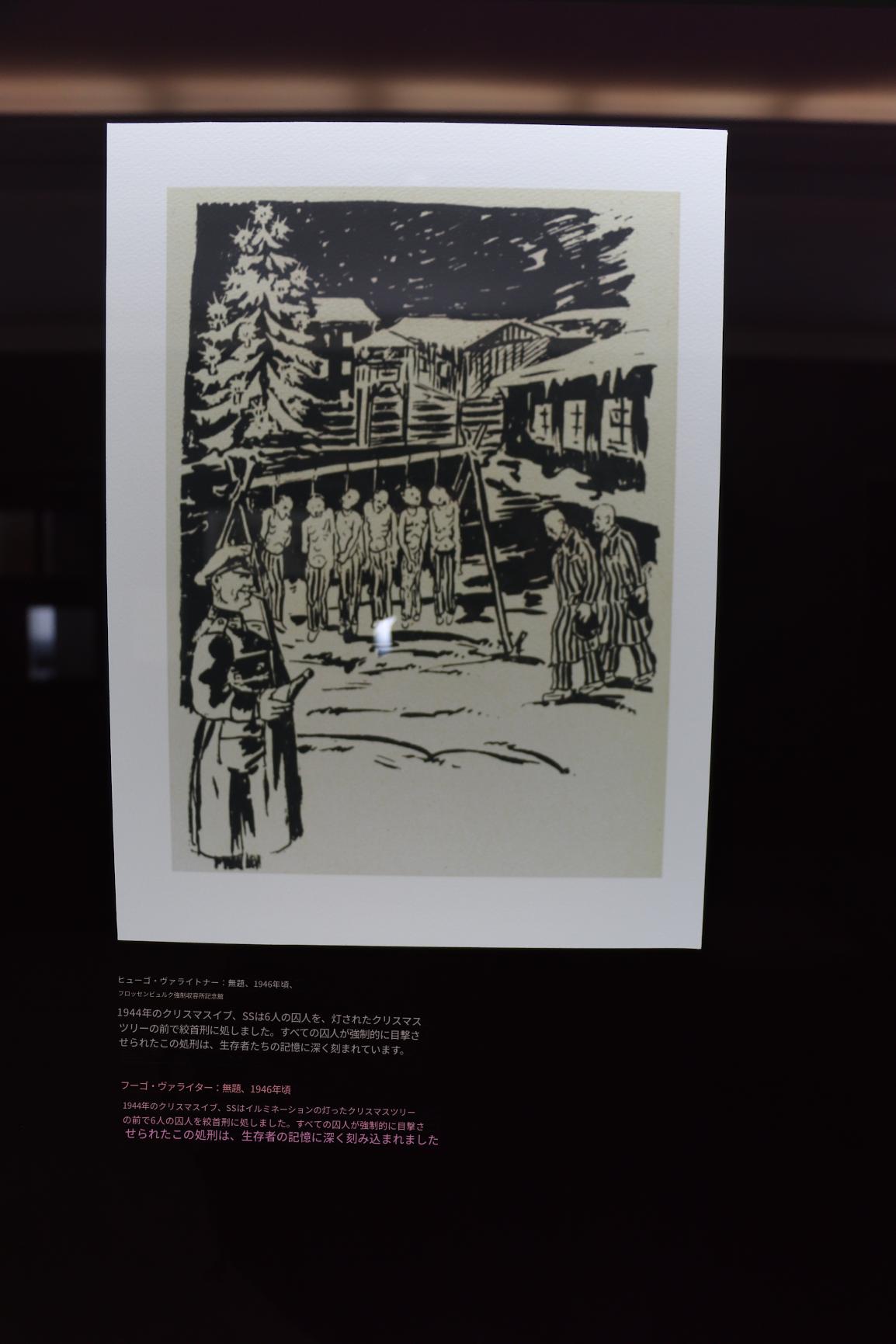 1944年のクリスマスイブ、SSは6人の囚人を、灯されたクリスマスツリーの前で絞首刑に処しました。すべての囚人が強制的に目撃させられたこの処刑は、生存者たちの記憶に深く刻まれています。