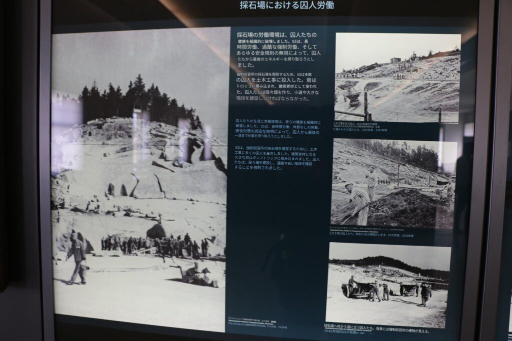採石場の労働環境は、囚人たちの健康を組織的に破壊しました。SSは、長時間労働、過酷な強制労働、そしてあらゆる安全規則の無視によって、囚人たちから最後のエネルギーを搾り取ろうとしました。