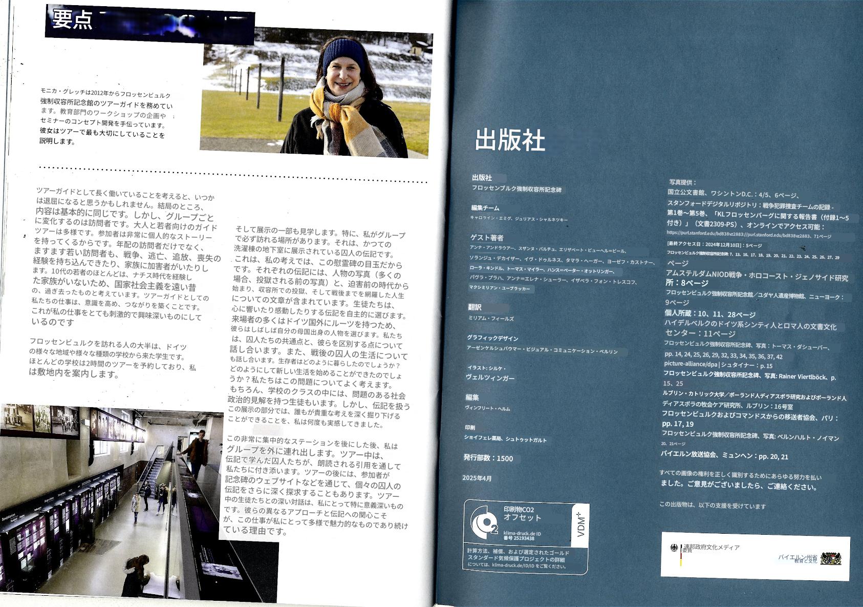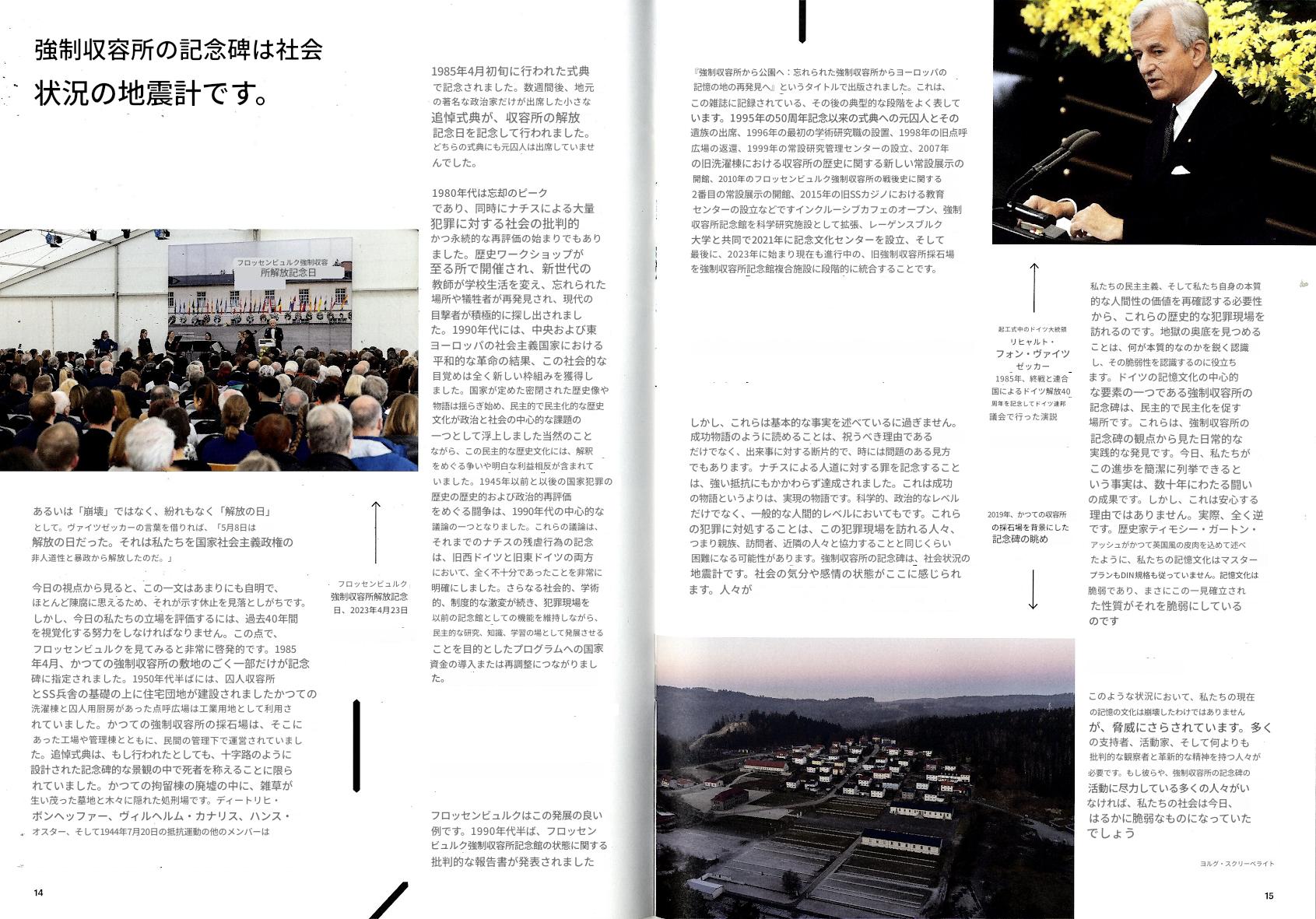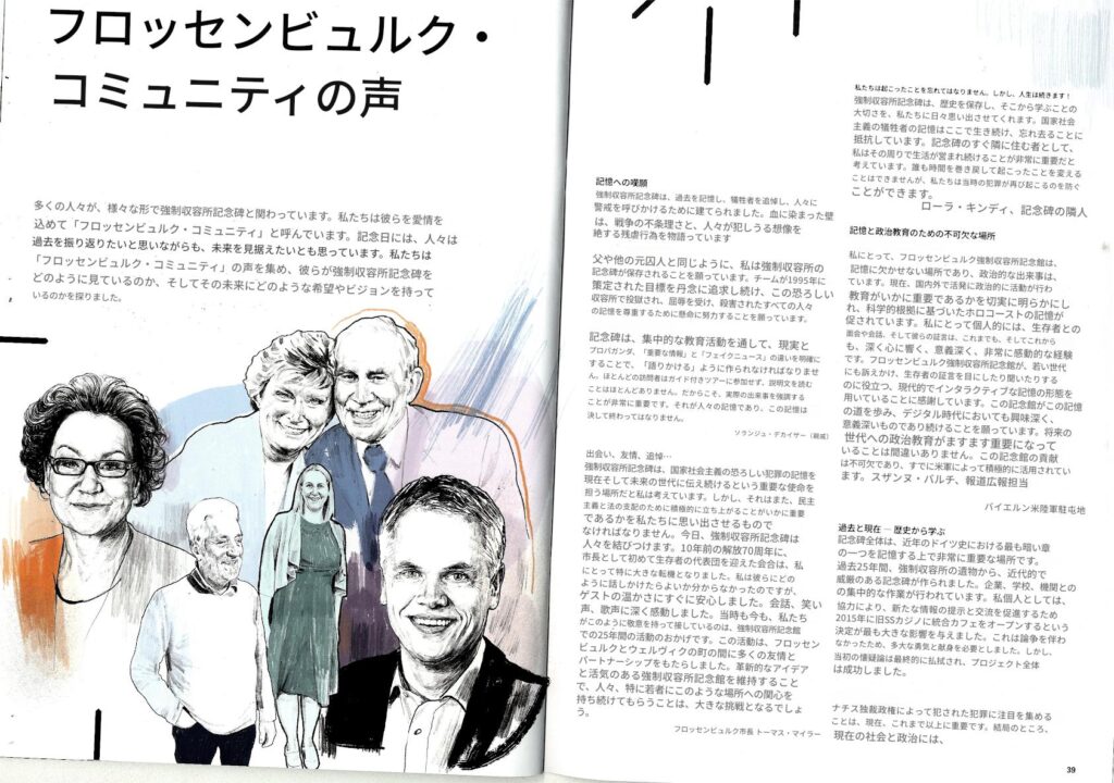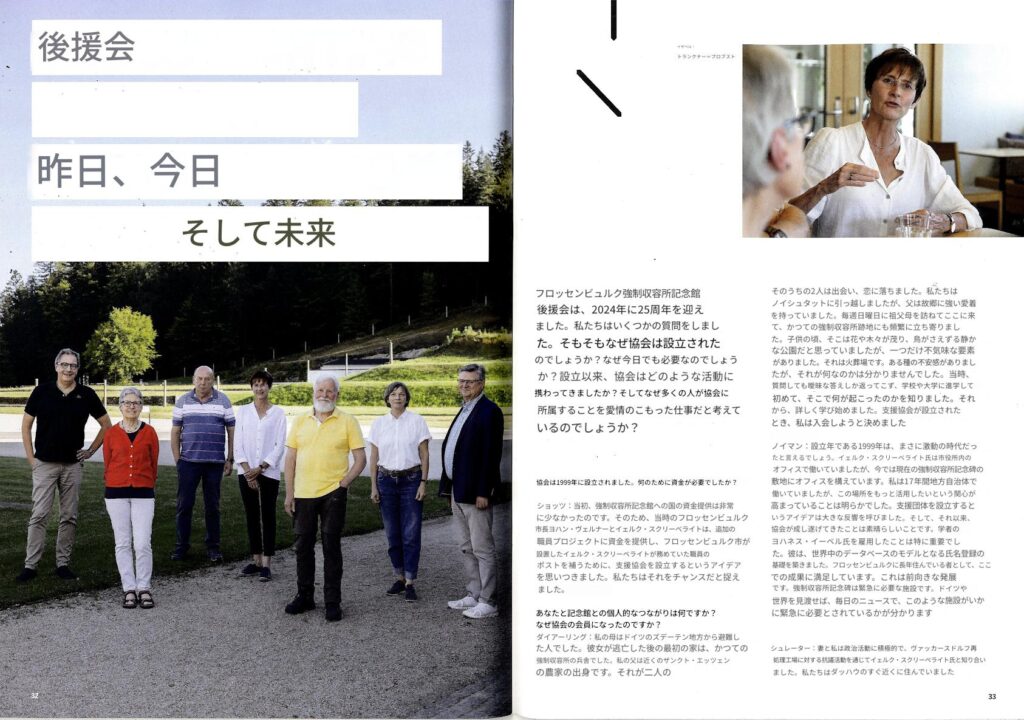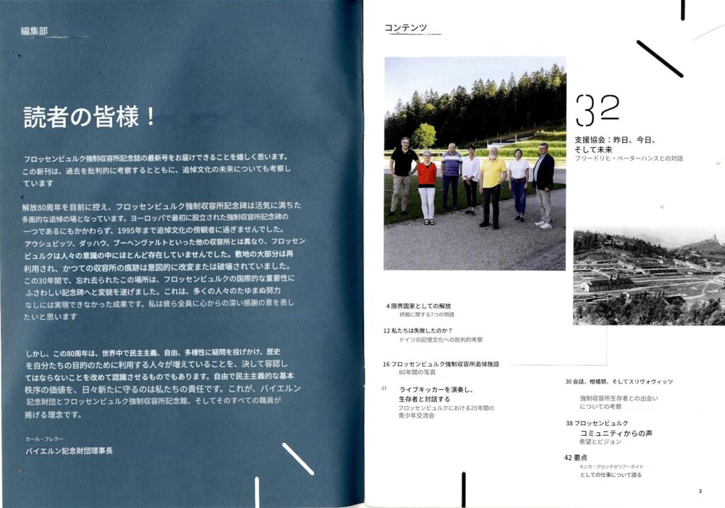 右)読者の皆様! フロッセンビュルク強制収容所記念誌の最新号をお届けできることを嬉しく思います。この新刊は、過去を批判的に考察するとともに、追悼文化の未来についても考察しています