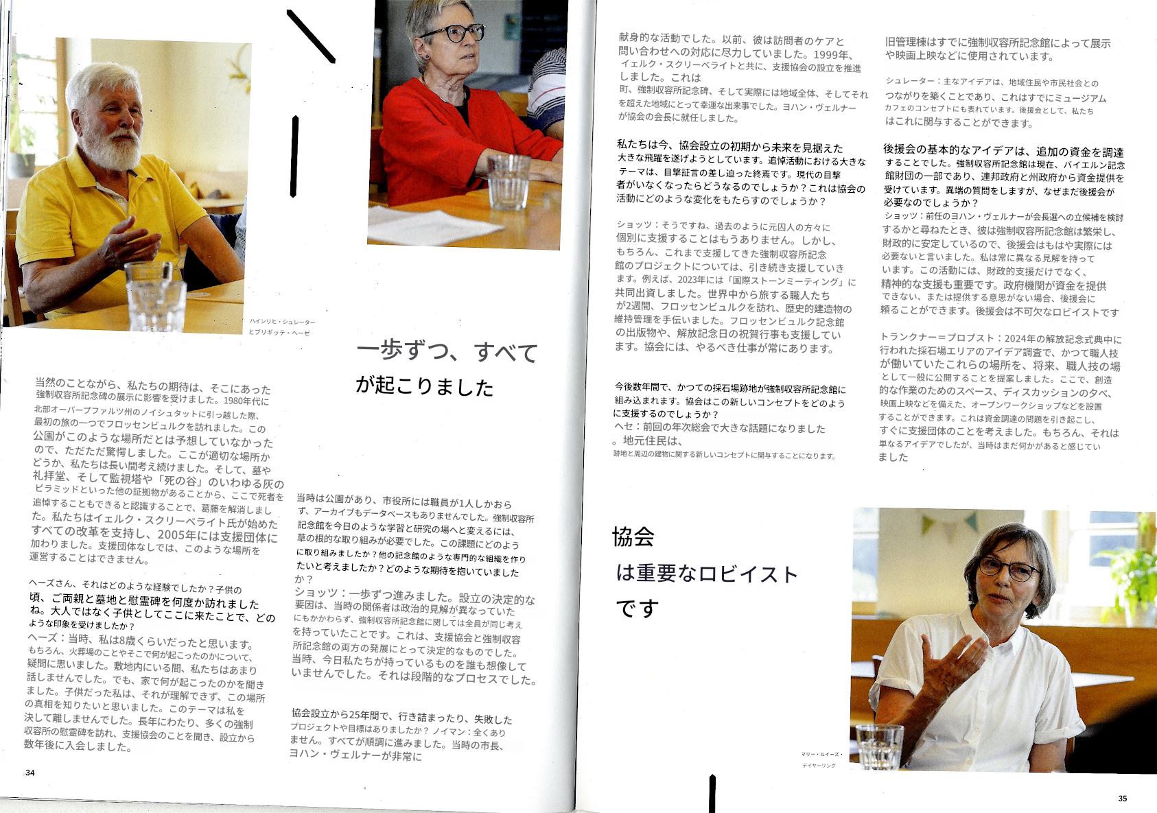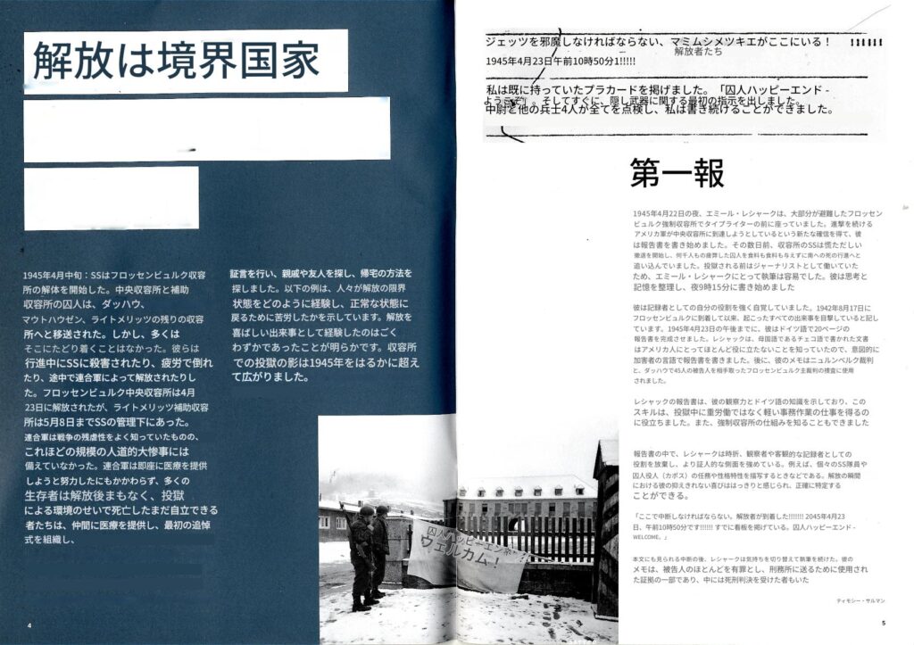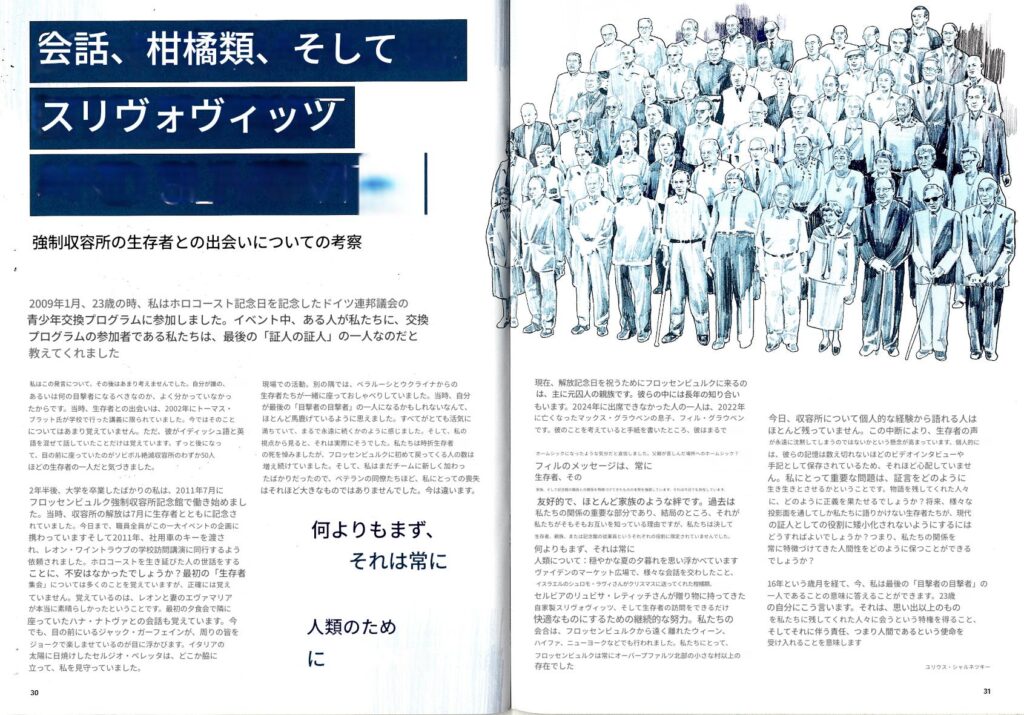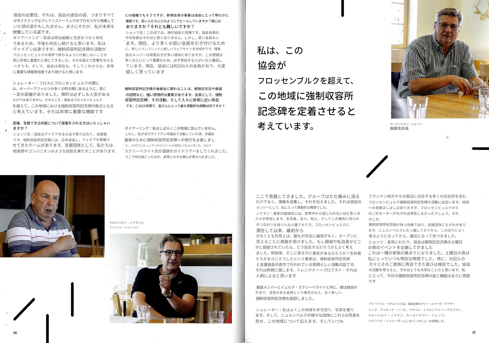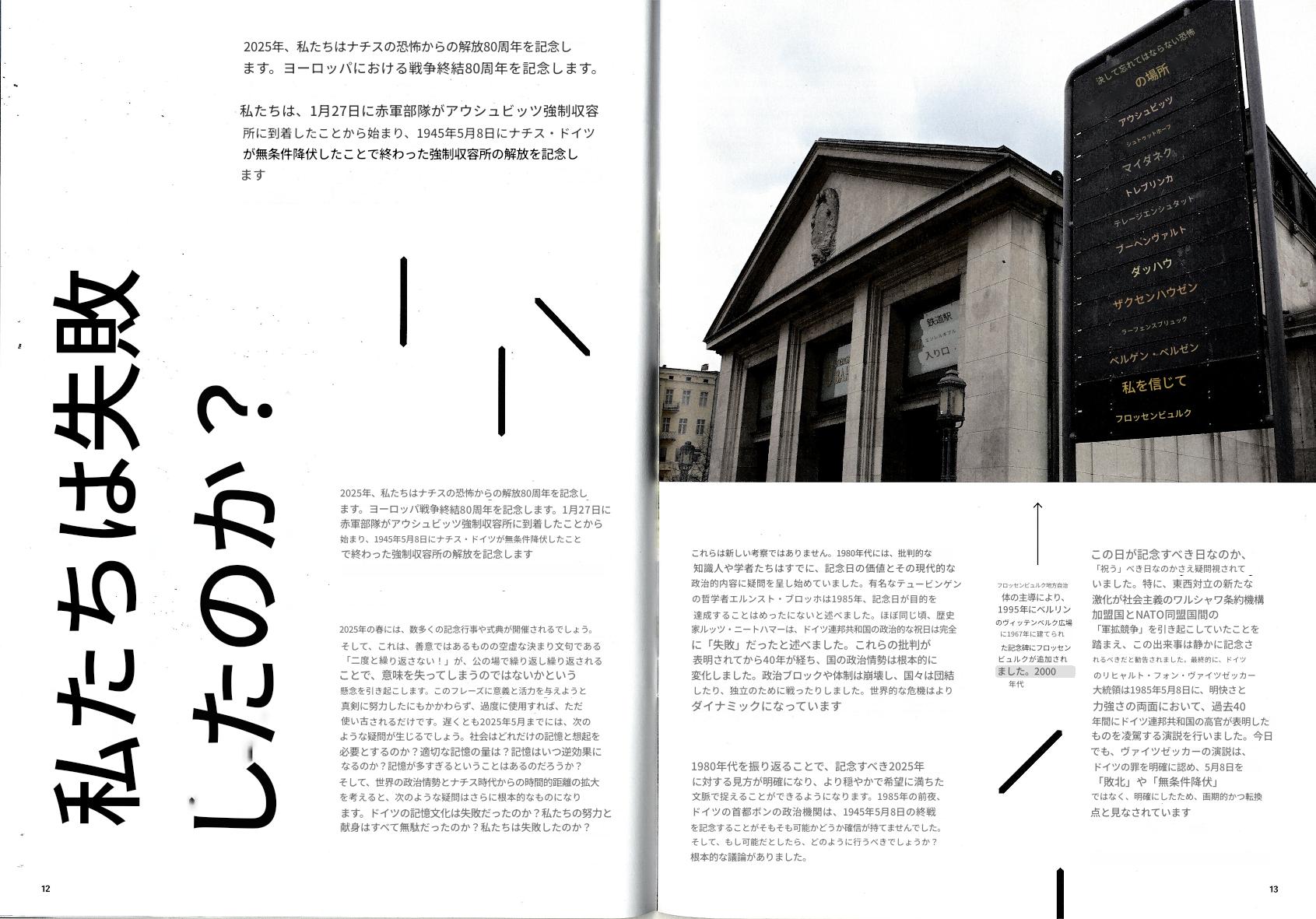 右)読者の皆様! フロッセンビュルク強制収容所記念誌の最新号をお届けできることを嬉しく思います。この新刊は、過去を批判的に考察するとともに、追悼文化の未来についても考察しています