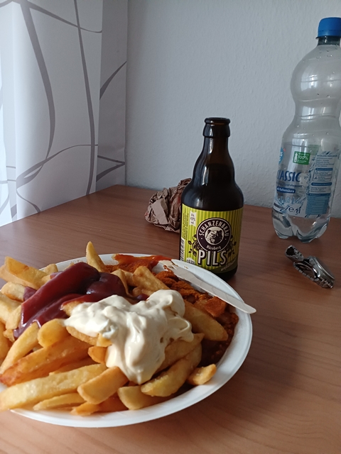 食事の例、貧乏旅行でほぼ買って部屋飯、フライドポテトは揚げたてで大量にあって、ビールもうまかった。