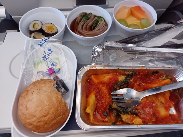 往復お世話になったルフトハンザ、ミュンヘンからの帰りは地上から搭乗、機内食もラザニア、日本そばなどうまかった。