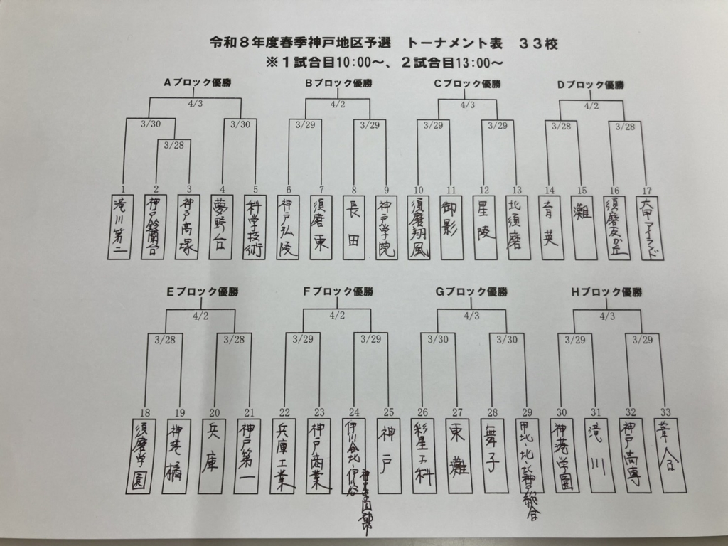 県高野連の組合せ見たら、「伊川谷と伊川谷北と神戸学園都市」の3校合同チームでした。聞き慣れない学校なので調べると、2校の県立校学校統合(23.12)により、2025年に神戸学園都市高校が新設されました。by神戸新聞