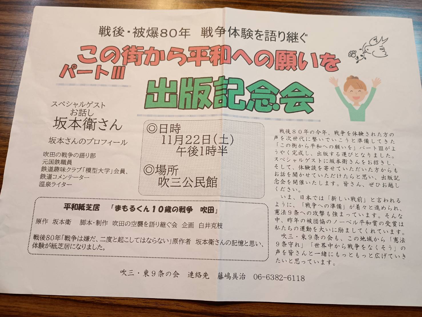 2025.11.22(土) 午後1時半 吹三公民館 吹田市高城町19−7