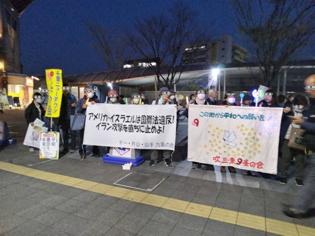 4月9日、JRイオン前で合同宣伝を行います先月末、アメリカとイスラエルが電撃的に大規模なイラン攻撃を開始し他国の指導者まで殺害しました。明白な国際法違反の暴挙です。日本政府もトランプ大統領をひと言も批判できず沈黙しています。戦乱が長引き、日本も巻き込まれかねない状況の中でJR 駅近隣の9条の会が合同宣伝行動をすることになりました。9条の会をはじめ当日参加可能な団体、個人もぜひ宣伝行動にご参加をお願いします。
