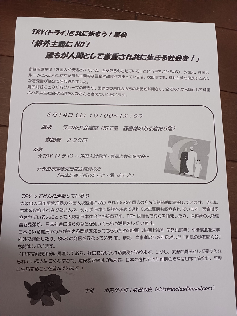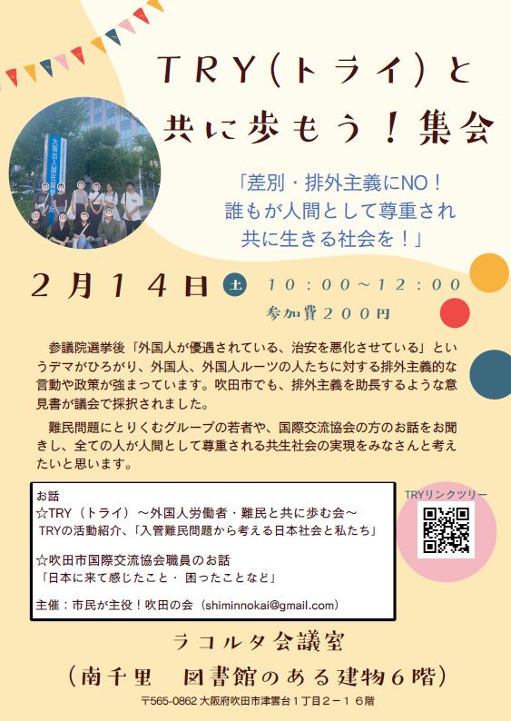 TRYと共に歩もう集会!ー差別・排外主義にNO!